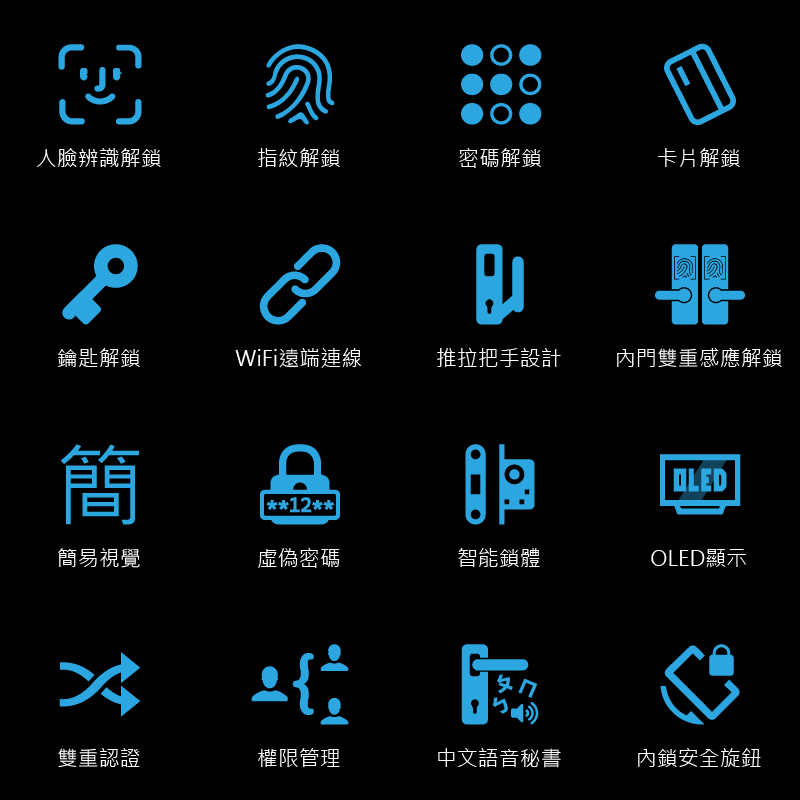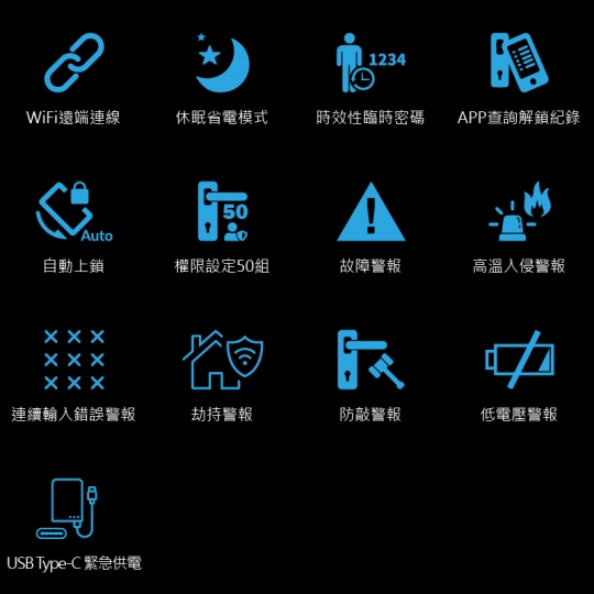 - 可設定雙重認證開鎖