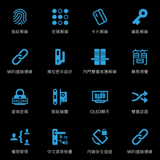 - 鎖體外殼材質:鋅合金主體+類鋼琴鏡面烤漆+外殼ABS塑膠