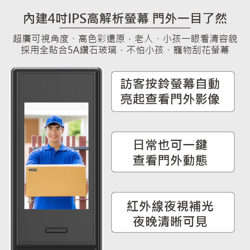 - 近端貓眼(屏幕查看屋外畫面)